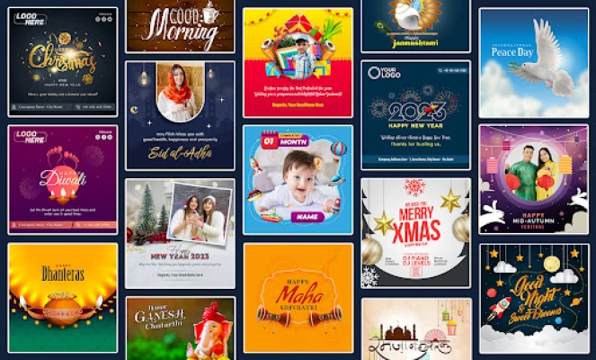 - Add your company logo, brand logo and personal photos on greeting cards.